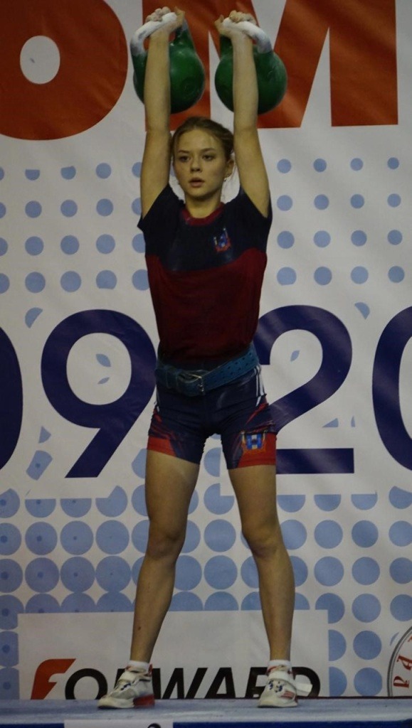 По итогам чемпионата хрупкая девушка Александра Семирунняя 83 раза подняла гирю весом 24 кг и стала лучшей в весовой категории до 58 кг.