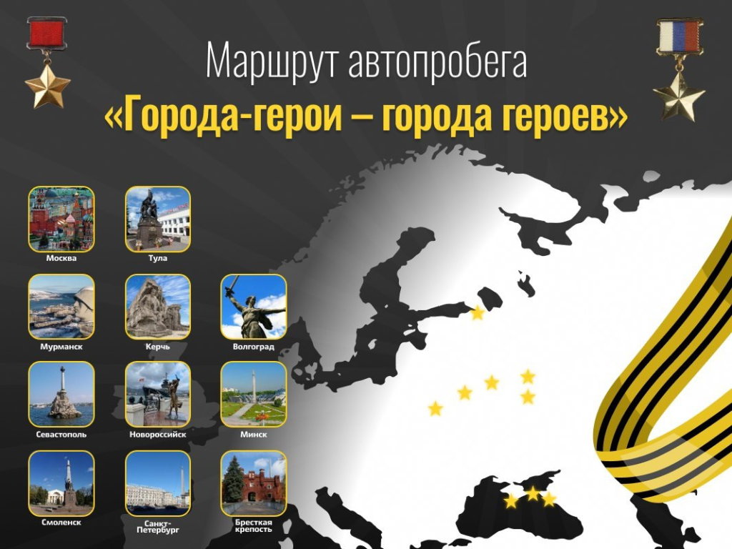 В рамках проекта запланирован масштабный автопробег по городам-героям. Он охватит три направления: северное, западное и южное. Старт акции намечен на 29 апреля в Москве. Подробности маршрутов смотрите на страницах «Сельского вестника» в социальных сетях.