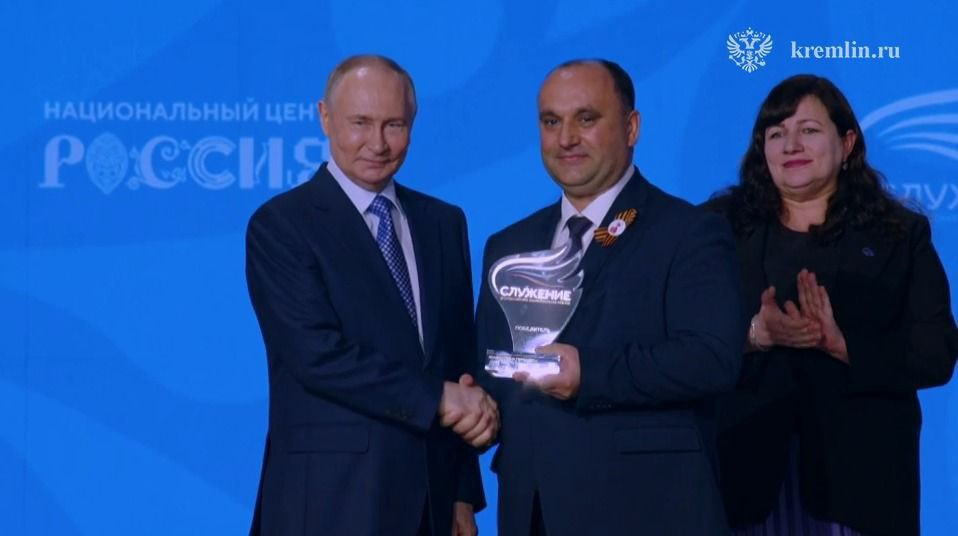 Президент Путин в наццентре «Россия» вручил статуэтку победителю в номинации «Мужество и героизм – на благо служения Родине». Им стал Владимир Таранцов — первый заместитель главы администрации Вейделевского района Белгородской области.