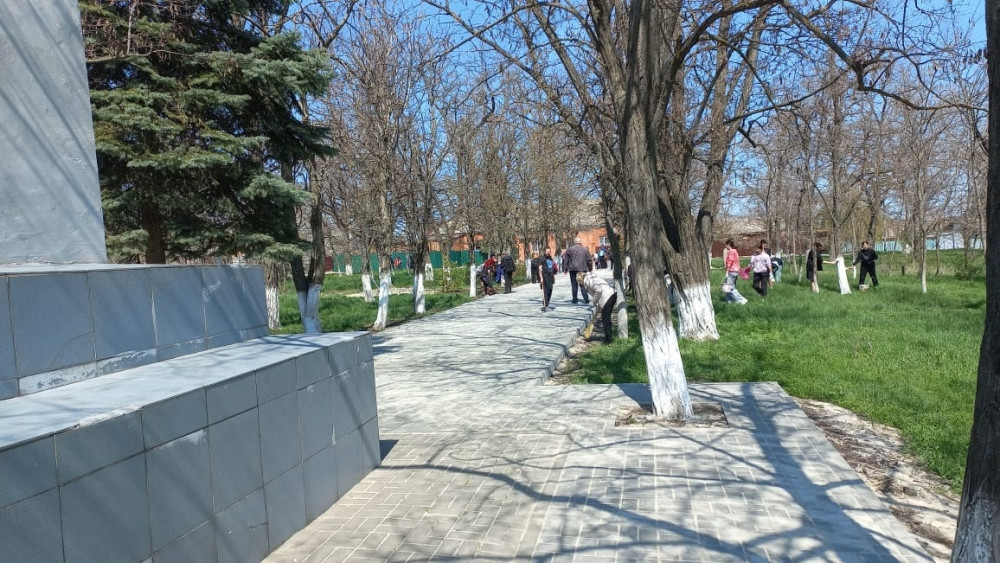 Жители Мокрологского сельского поселения Октябрьского района Ростовской области провели работы по благоустройству территории памятника воинам-освободителям, расположенного в хуторе Маркин.