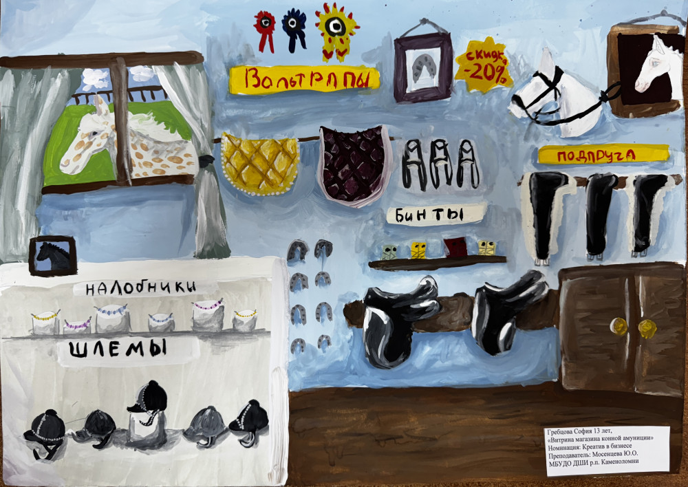 — София Гребцова – «Витрина магазина конной амуниции», ДШИ поселка Каменоломни. Преподаватель – Мосенцева Ю.О.