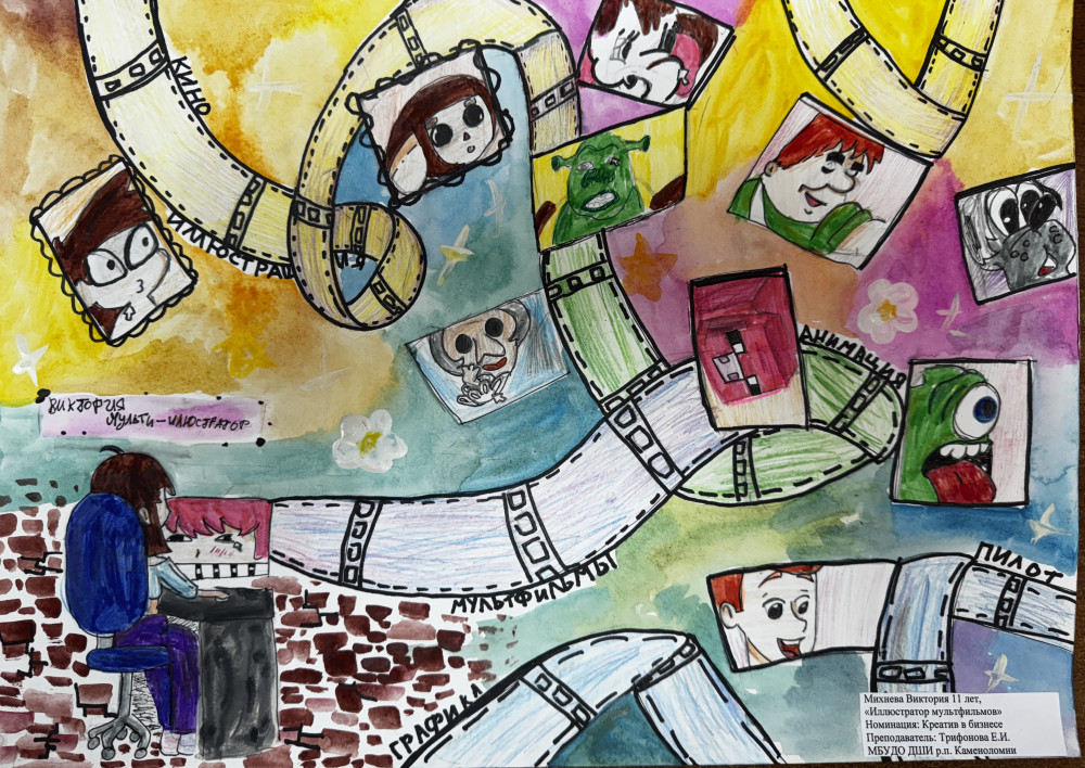 — Виктория Михнева – «Иллюстратор мультфильмов», ДШИ поселка Каменоломни. Преподаватель – Трифонова Е.И.