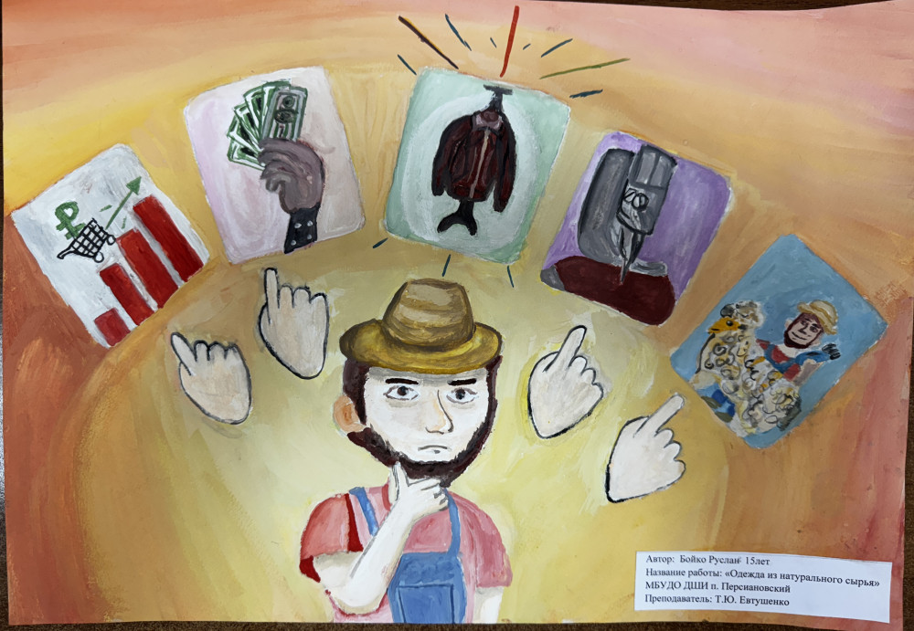— Руслан Бойко – «Одежда из натурального сырья», ДШИ поселка Персиановский. Преподаватель – Евтушенко Т.Ю.