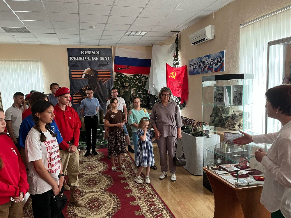Все участники побывали на экскурсии в зале «Боевая слава». Там они познакомились с выставкой, рассказывающей о дончанах — участниках боевых действий в Афганской войне, а также экспозицией, посвященной специальной военной операции. В этот день в зале была открыта новая музейная витрина «Единая сила», представляющая историю подвига семьи Кузьминых.