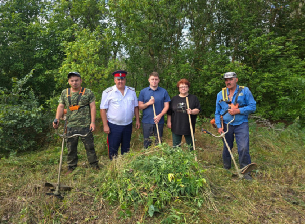 Казаки юртового казачьего общества «Нижнедонской юрт» совместно с администрацией Октябрьского района, сотрудниками отдела полиции № 3 МУ МВД РФ «Новочеркасское» и местными жителями ликвидировали очаги произрастания наркосодержащих растений.