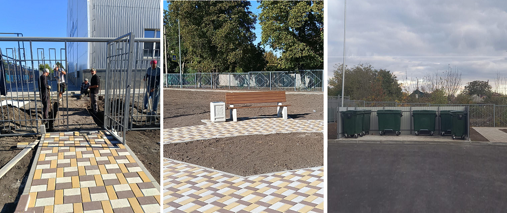 Преображение школьного пространства включает не только озеленение. Напомним, для поддержания чистоты была обустроена специальная контейнерная площадка с мусорными баками.
