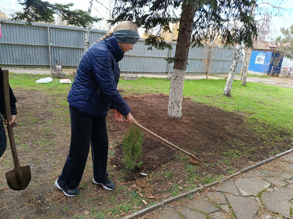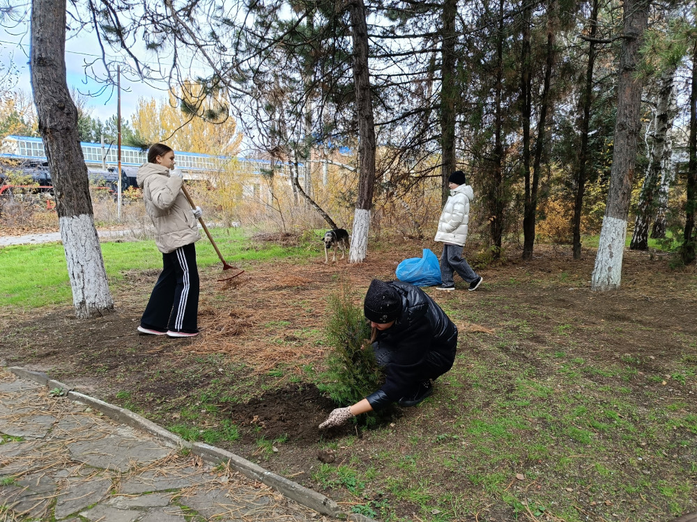 Под руководством наставника Елены Сапелкиной, в преддверии дней памяти и славы, ребята из отряда «Хранители истории» очистили от мусора прилегающую к памятнику территорию. Кроме того, как символ вечной памяти, заботы о природе и уважения к героическому прошлому, у мемориала были высажены молодые туи.
