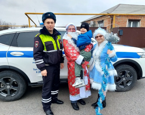 Праздник для Артёма начался в преддверии Нового года с визита настоящего Деда Мороза, который вручил ему подарки. Но главный сюрприз ждал впереди. Дед Мороз проводил именинника к служебному автомобилю инспекторов ДПС, где для мальчика устроили настоящую экскурсию в мир профессии.
