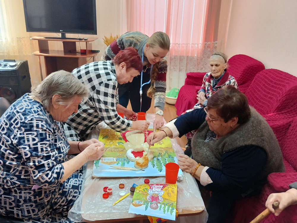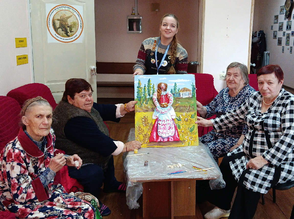 В теплой атмосфере коллективной работы люди разных поколений делились опытом и знаниями. Итогом совместного творчества стала объемная композиция формата А2 (420х594 мм) с изображением донской казачки.
