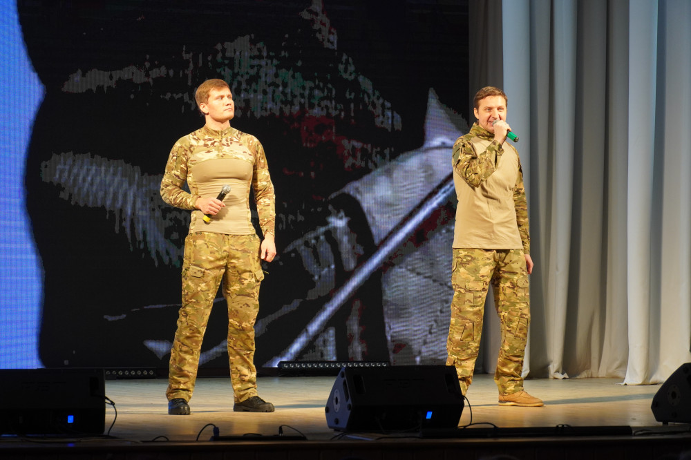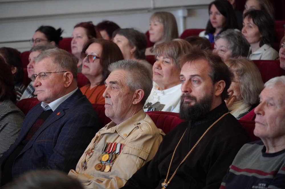 Зрительный зал, собравший ветеранов, военнослужащих, участников специальной военной операции, волонтеров и семьи героев, жителей стал единым пространством уважения к ратному подвигу и истории Отечества.