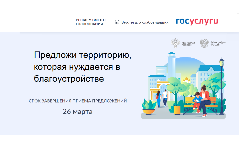 Предложить территорию для благоустройства можно на платформе Госуслуги — «Решаем вместе. Голосования» (https://pos.gosuslugi.ru/lkp/fkgs/home/), выбрав место на карте и оставив свои пожелания по его преображению.