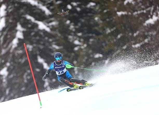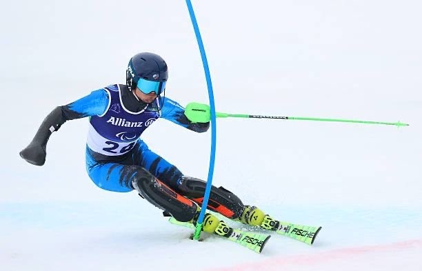 На фото: яркие кадры выступления Алексея Бугаева на Паралимпиаде-2026 в слаломе