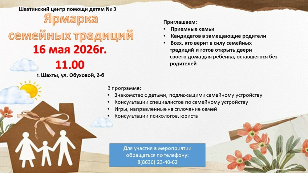 В Шахтинском центре помощи детям №3 в мае пройдёт традиционное региональное мероприятие «Ярмарка семейных традиций».