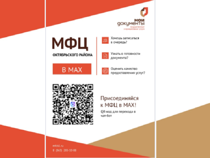 Жители Октябрьского района могут сэкономить время при посещении МФЦ: записаться на прием теперь можно с помощью чат‑бота в мессенджере MAX.