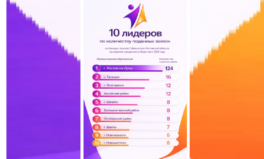 Октябрьский район вновь вошел в десятку лидеров по количеству поданных социальных инициатив на конкурс грантов губернатора Ростовской области на развитие гражданского общества в 2026 году, подтвердив статус одного из самых активных муниципалитетов