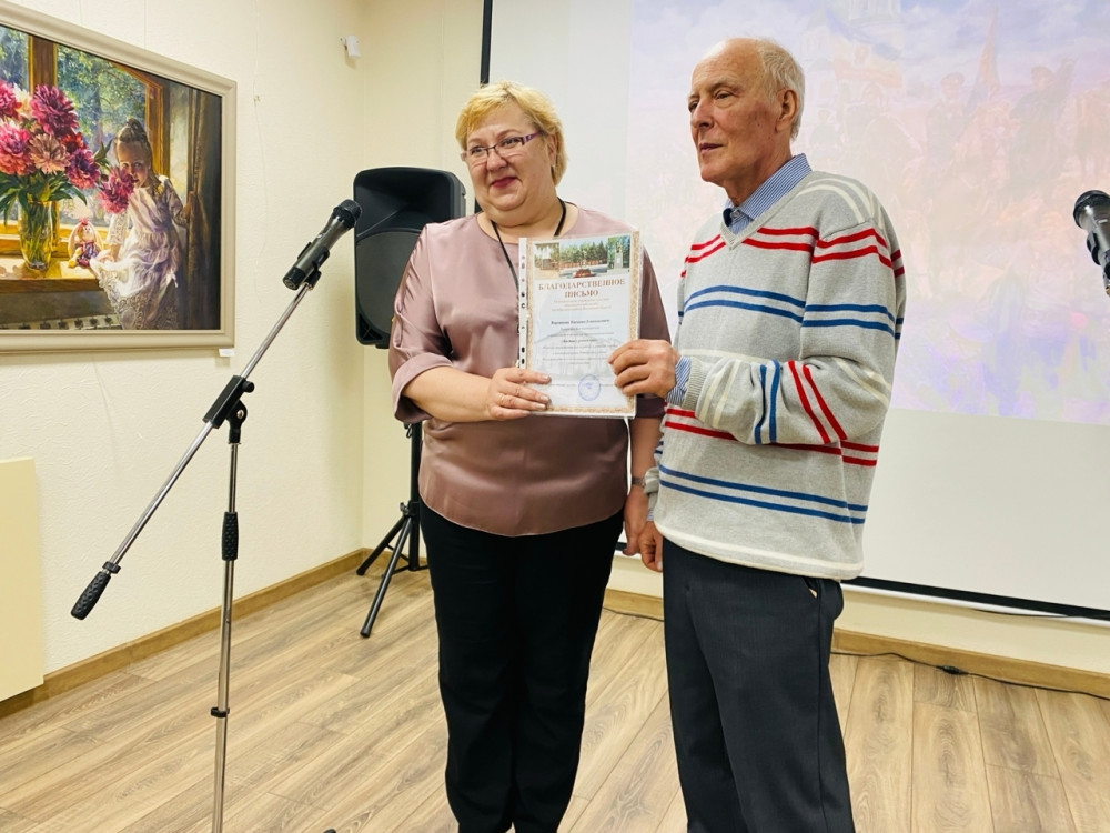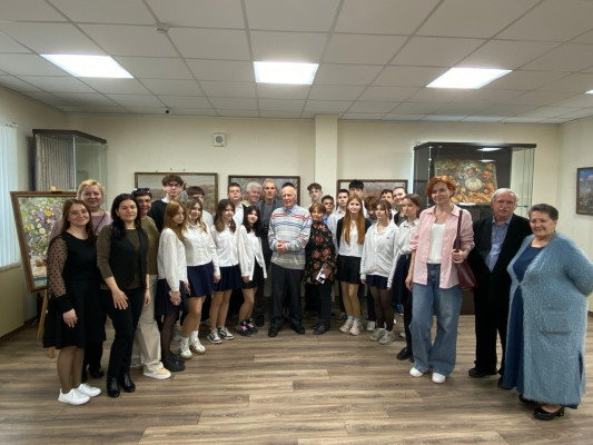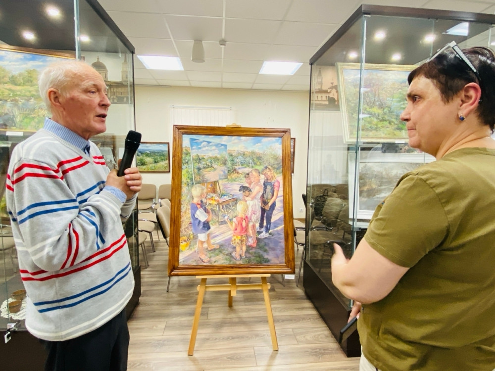 В завершение торжества Евгений Ворожцов ответил на вопросы юных художников из Детской школы искусств и провел для гостей экскурсию, рассказав историю создания каждой работы.